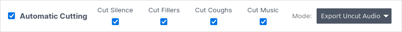 For this to work you need to select either the “Set Cuts To Silence” mode or the “Export Uncut Audio” mode in Automatic Cutting. We strongly suggest the “Set Cuts To Silence” mode, as it will avoid audio artifacts.